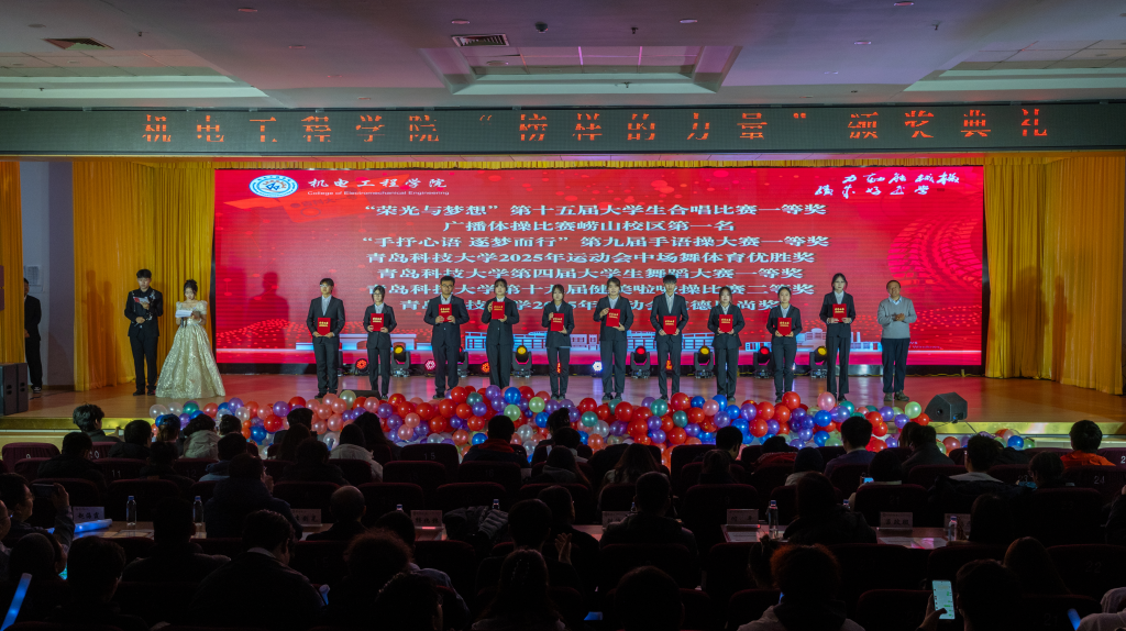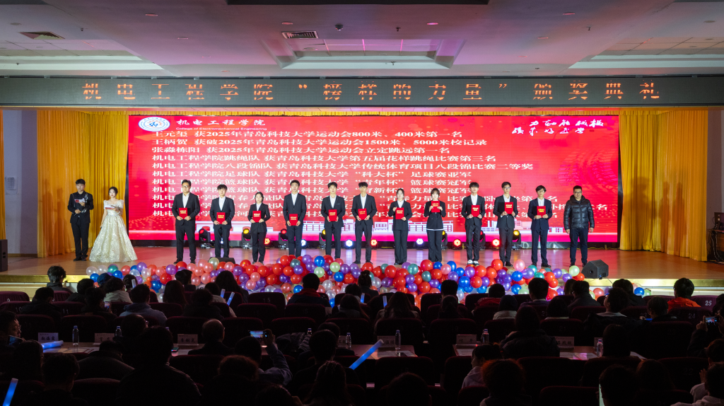 青春逢盛世,奋斗正当时。12月30日,BBIN宝盈集团2025“机聚英才·智创辉煌”迎新晚会暨“榜样的力量”颁奖典礼在崂山校区第二报告厅举行。学校党委宣传部副部长、全国红润初心工作室负责人贾可好,学院党委副书记兼副院长杨小明、副院长杨化林、张卫锋、李剑光、刘治明,以及2025级班主任、系教研室主任、全体专兼职辅导员和2025级学生参加活动。