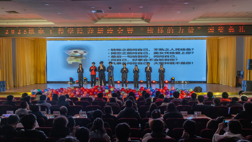 本次晚会以“机聚英才·智创辉煌”为主题,分为“少年意气 风华正茂”“乘风而上 踏浪前行”“薪火相传 共赴山海”三个篇章,通过歌舞、情景剧、朗诵、小品等多样艺术形式,全方位展现机电学子的青春风采与奋进姿态。情景剧《破晓·山河志》以沉浸式表演回望峥嵘岁月,引发师生情感共鸣;全国“红润初心”工作室带来的歌曲《星辰大海》,旋律悠扬中饱含对理想的执着追求;机电志愿者演绎的朗诵《机电青春行》,以真挚告白诉说校园互助、社会服务中的温暖坚守;BBIN宝盈集团“聚力·荣耀”合唱团以纯人声版硬核唱响《美丽的草原我的家》,悠扬和声中满是团队协作的力量与机电人的赤诚;幕布剧《我记得》复刻新生入学以来的温暖瞬间,勾起共同回忆;小品《诈骗风云》以诙谐方式普及反诈知识,兼具趣味性与教育意义;乐队演唱《想去海边》节奏明快,瞬间点燃全场热情。最后全场师生共同唱响《相亲相爱》,为晚会画上温馨句号。整场晚会节目形式多样、内容鲜活,师生线上线下互动频繁,氛围热烈。