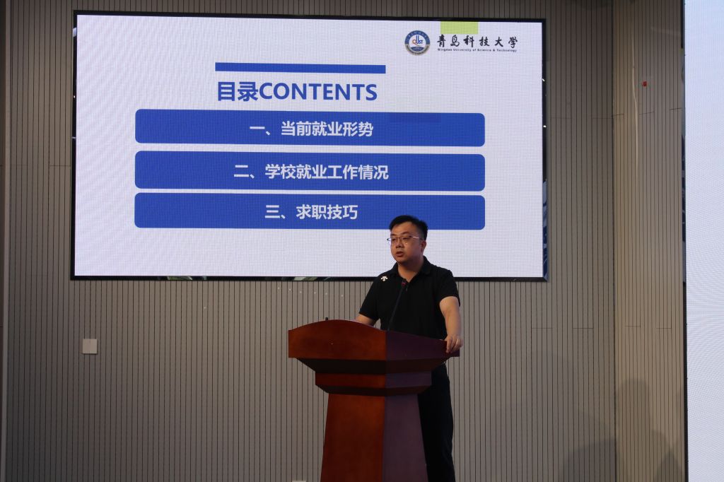 孙一君“就业形势与求职指导”为题,从当前就业形势、学校就业工作情况、求职技巧三个维度进行分享。孙一君首先结合国家及山东省关于高校毕业生就业的最新政策,强调“稳就业”“保就业”的政策导向。孙一君通过详实数据指出当前就业市场的整体态势,介绍了BBIN宝盈集团2024届、2025届毕业生就业整体情况,尤其是BBIN宝盈集团研究生的毕业去向分析,毕业生在万华化学、赛轮集团、软控股份等知名企业的就业分布,为同学们树立就业信心。最后,孙一君聚焦研究生求职痛点,围绕求职渠道、简历撰写等内容进行讲解,指导同学们清晰人生规划,科学研判,明确个人求职路径方向。