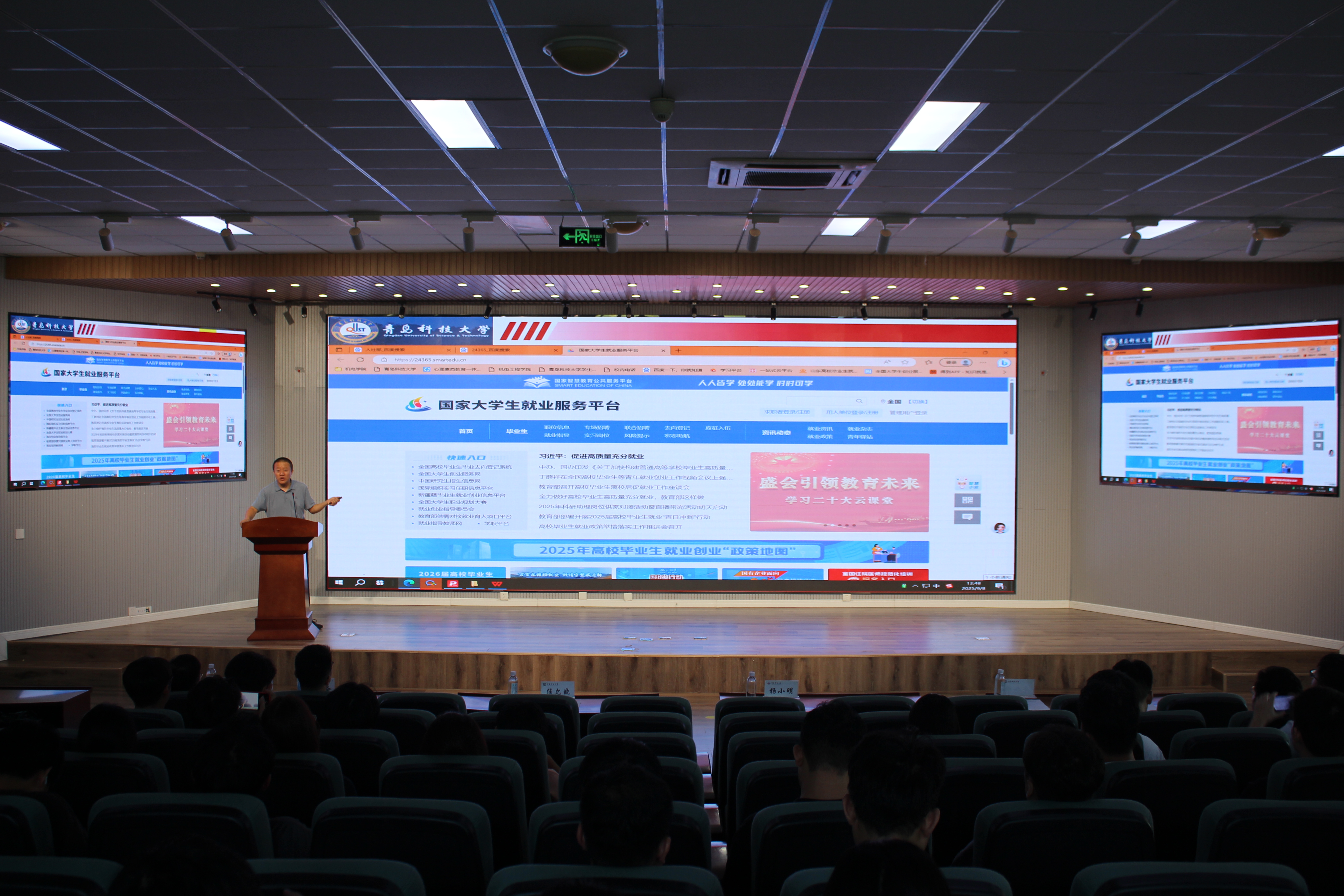 9月9日,BBIN宝盈集团在机电楼530会议室举行2026届研究生就业开学第一课。学校就业指导中心副主任孙一君、软控股份有限公司人力资源部刘备受邀作专题分享。学院党委副书记杨小明主持会议,2026届研究生学生骨干近百人参加就业开学第一课。