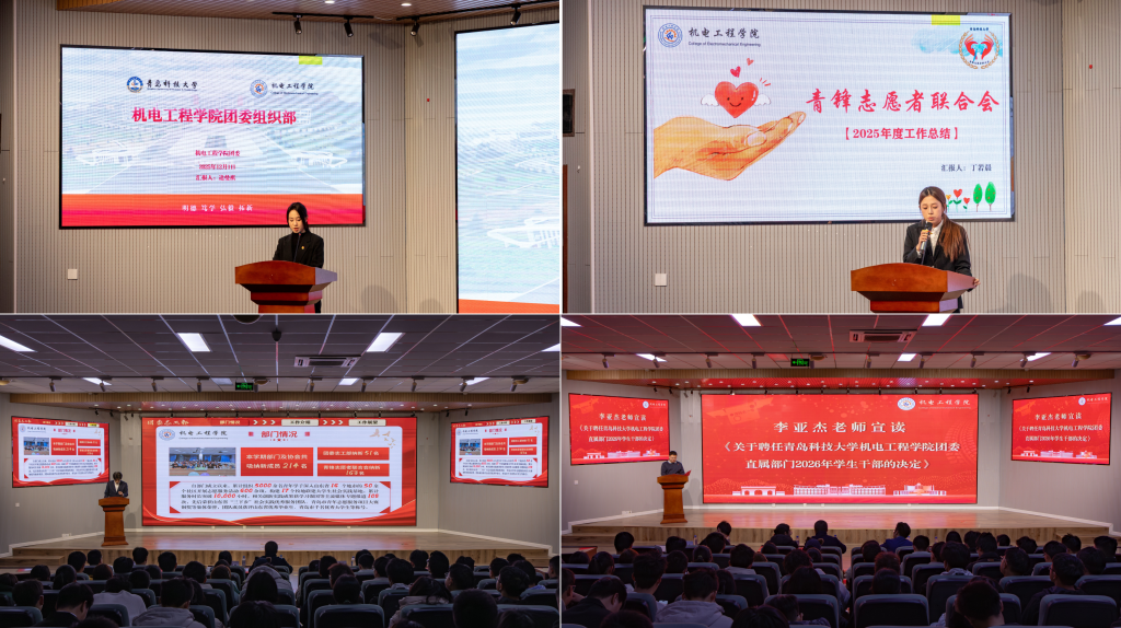 会上,团委组织部副部长逄曼祺、团委志工部骨干张峻旗、青锋志愿者联合会副会长丁若晨分别代表部门和协会作2025年度工作总结及未来工作展望。三位学生骨干从活动开展、志愿服务管理、团务规范推进、团队建设优化等方面进行系统总结,并围绕来年工作提出全新思路与目标。