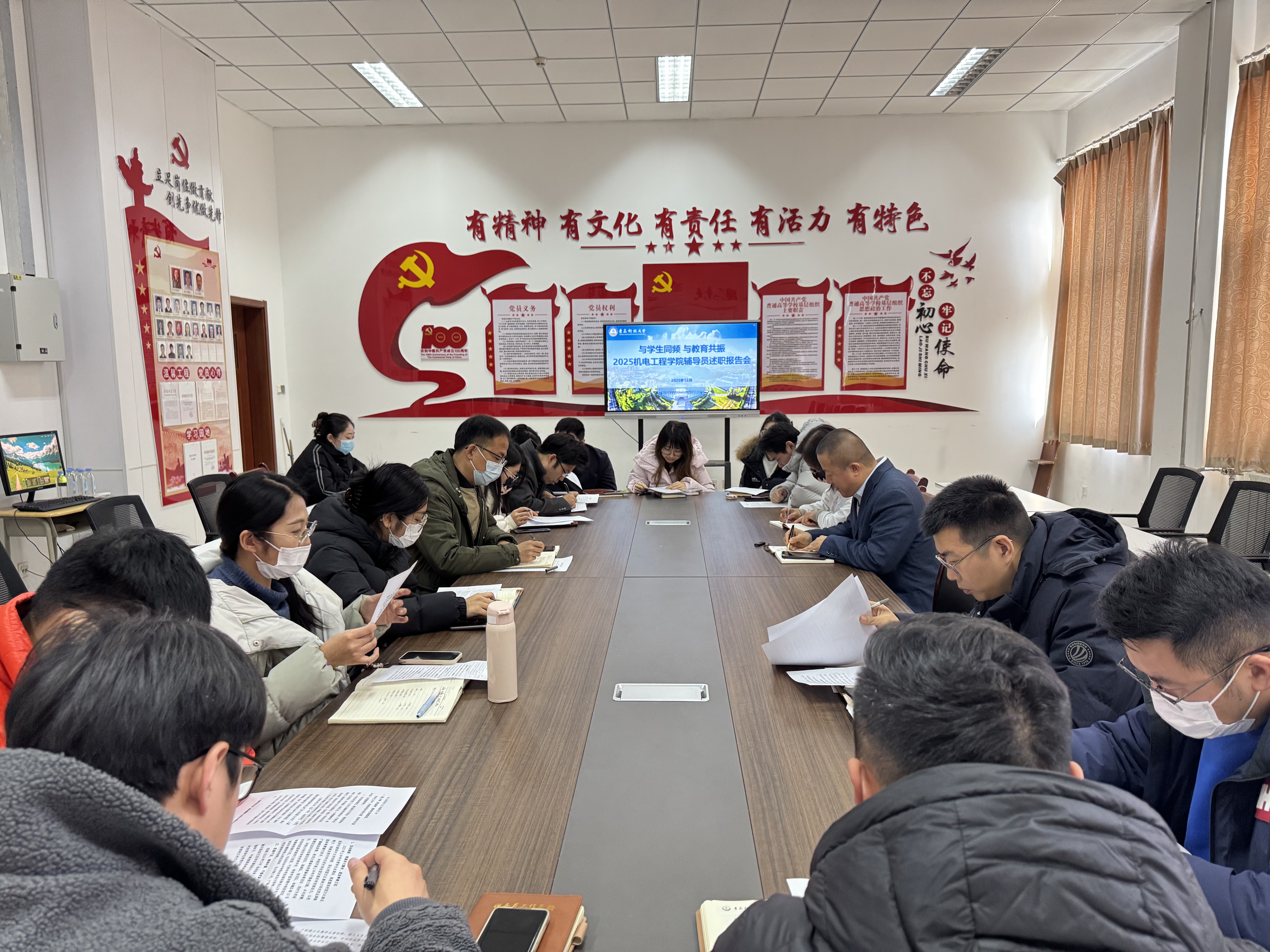12月16日,BBIN宝盈集团在机电楼党建活动室组织2025年度专职辅导员述职报告会。学院党委副书记杨小明参加会议并讲话,副院长张卫锋、教师代表白杨、校党委宣传部理论教育科正科级干事王乐昌受邀参会,全体专兼职辅导员参加会议并依次述职。